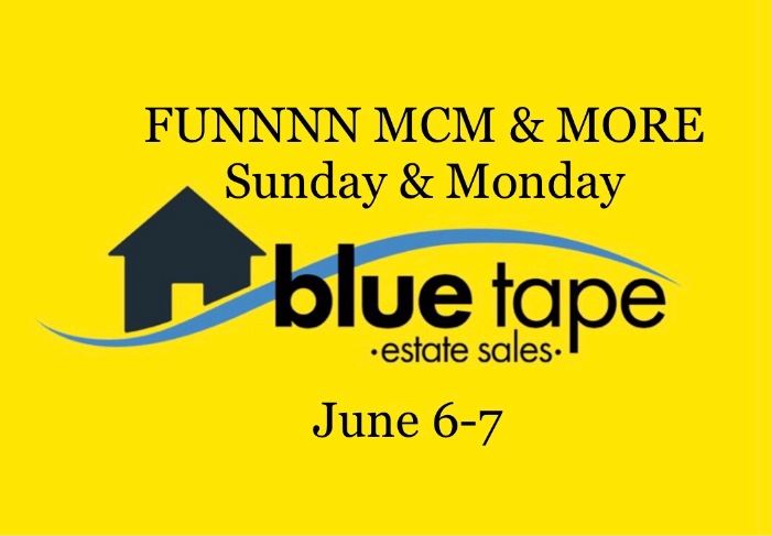 SALE HOME is located on 60 th Terrace in KCMO, JUST West of Wornall Road. Address will be posted Sunday morning on estatesales.net. SUNDAY, June 6 th …………... 9:30am – 3:30pm MONDAY, June 7 th ……....…. 9:00am – noon @ 50% off! HEY Heywood Wakefield and MCM fans! THIS is a FUN SALE with lots o’ MCM, vintage and retro furniture and miscellany … our gal loves those fun times and we love offering it to you! Heywood Wakefield set of 6 ‘Dog Biscuit’ dining chairs, table (top damage, sold separately) and matching dining cabinet --- also have Heywood Wakefield...