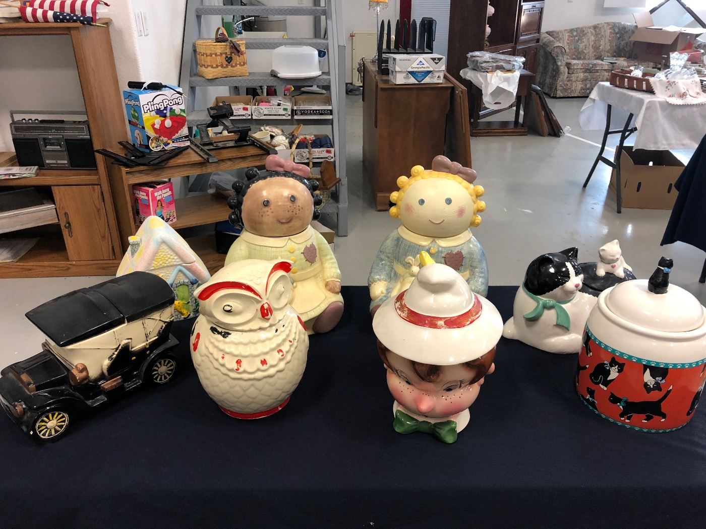Jewerly, cabela items , longaberger baskets, Longaberger dishes,Cookie jars,Large collection of jewel tea,Precious moments,Washer dryer,Roll top desk an office supplies ,Sofa,Bookcases,Pictures some by Doris Brinton,Antique glassware ,Small appliances, Silverware, Corning ware bake dishes, Glass bake ware ,Quaker Oats items ,Christmas decor, Dolls, Kansas state items,Paint ball guns, Mens clothing and much more.