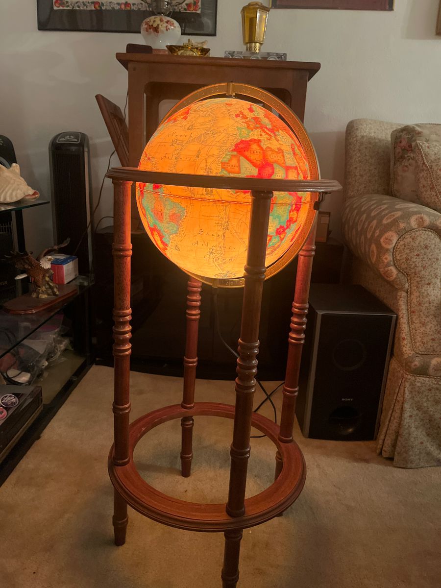 Light up globe, Dining room table with 6 chairs, 2 leafs and table padding., Large china cabinet with hutch to match., Vintage curio cabinets, Jewelry armoire, Bedroom armoire, Lots of jewelry (Watches, necklaces, bracelets, earrings, pins and much more., Huge collection of Precious Moments, Large Christmas china set, Christmas decor and vintage collectibles, Large Irish and Scottish Santa Claus Collection, Couch and matching chair, End tables, coffee table and TV console stand, Lamps, pictures, knickknacks, clocks, DVD’s, VHS, MANY books and more., Casio keyboard and many records., Cameras, computer monitors (like new) with bases, scanner, printers and more., Standing electric...