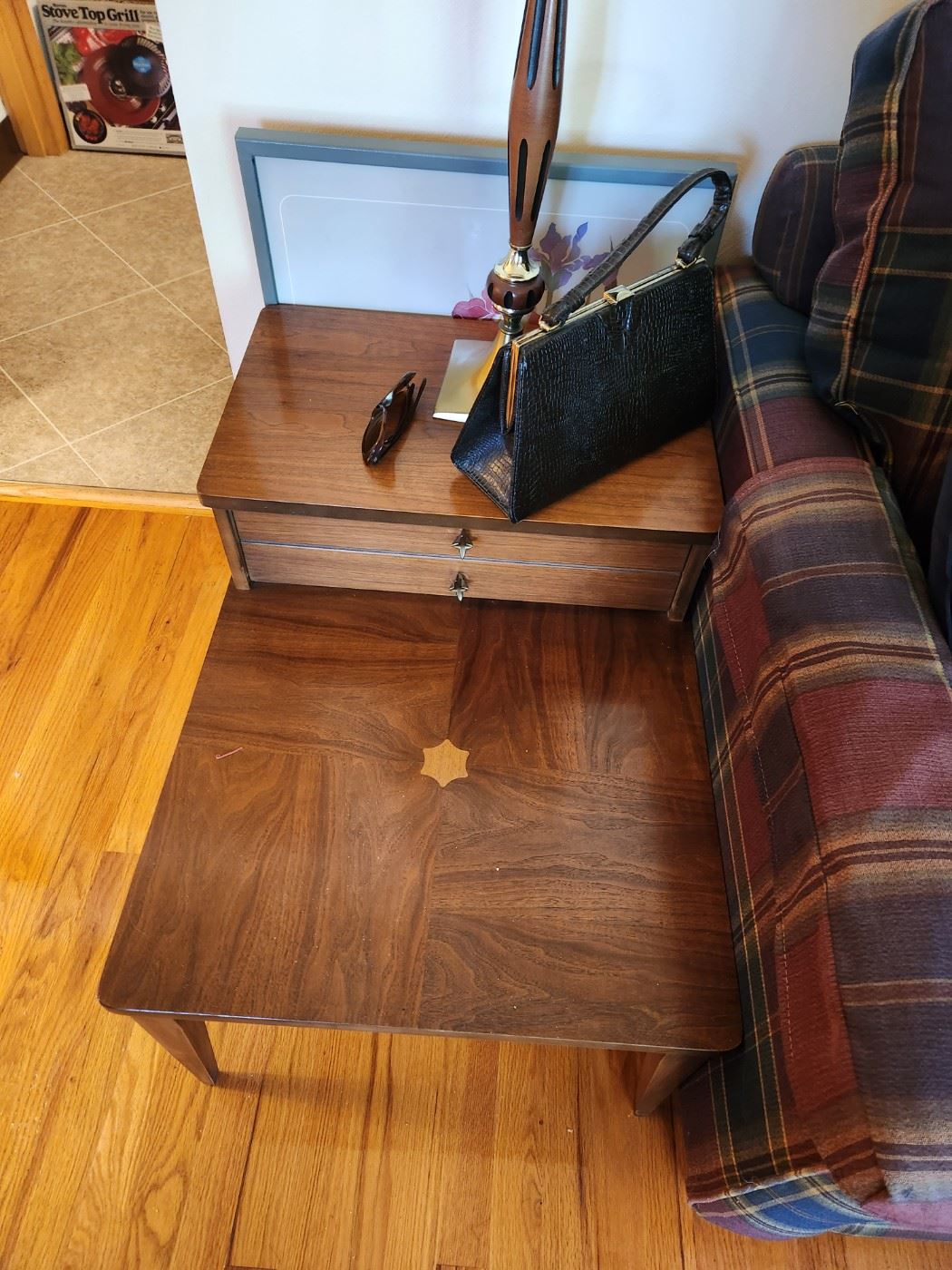 Mcm coffe table, end tables, couch, chairs, small display cabinet, lamp, home crest patio set