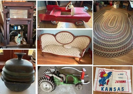 This auction is part 2 of several auctions for the estate of artist Mary Cobb Martin. Auction contains some furniture, Pottery, Kansas University items, vintage tools, a gorgeous 2 tier fireplace mantle, vintage and antique items, small appliance and a whole lot more