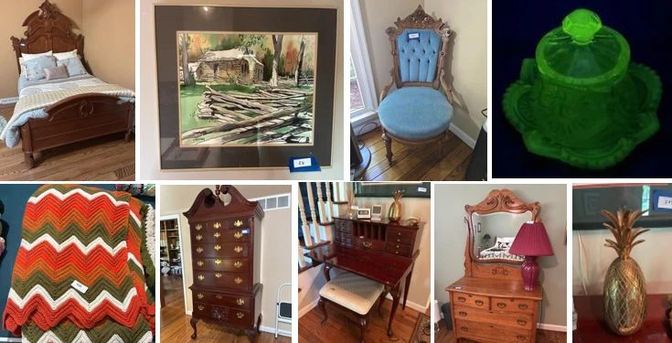 YOU CANNOT BID FROM THIS SITE. FOLLOW SELLERS LINK TO SEE AUCTION IN ITS ENTIRETY AND BID. This is the second auction at this Grand home in Chesterfield consisting of the majority of the house and includes lots of beautiful Mahogany furniture including a Thomasville bedroom set and a Henredon formal Dining room set, Antique furniture, Antique Uranium Fenton glass, Lots of original artwork, Americana decor, Vintage formal gowns, Lamps, Bose audio components, Barrister book cases, ping pong table and a whole lot more. Auction Starts: April 24th Preview: There will be no preview for this auction as our client...
