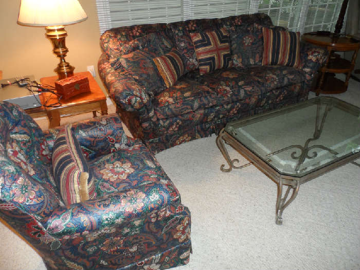 Amazing home nestled in the St. Albans woods. High quality and beautifully designed furniture; designer clothing and handbags; high end rugs; home decor; and more. GATES OPEN 6 AM Knob Creek deep blue floral couch & loveseat and ottoman purchased at Frank Patton Interiors, Pennsylvania House secretary 6’4” high, two Drexel Heritage lighted cabinets w/glass shelving purchased at Plunkett’s Furniture – side by side together they measure 6' wide, 81“ high, Fairington sofa and matching loveseat, cream color w/multicolor design, like new from Dau Furniture, Bernhardt dining room set w/2 leaves & custom pads for tabletop, seats 10, retails $12,000,...
