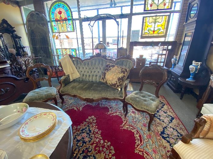 Aberdeen Antiques specialized in high quality antiques dating from the late 1700's thru the 1800's, including pieces from Mitchells and Rammelsberg, Meeks. John Jelliff sofas, wall, mantel, porcelain and grandfather clocks including a Gustav Becker clock from Germany. Signed Tiffany hanging light . Other antiques include cut glass, oil paintings, stained glass, rugs and lots of fine furnishings for your home. Salt glaze, dry sink, biscuit table are just some of the primitives included in this sale. All prices have been reduced to liquidate. This is one estate sale you don’t want to miss . The basement is packed with...
