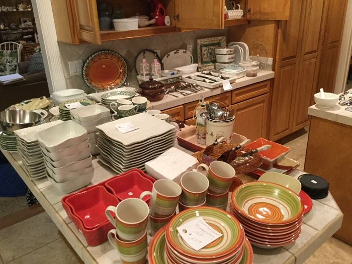 THIS IS A GREAT SALE , THAT HAS MANY MANY USEFUL ITEMS, A HUGE AMOUNT OF KITCHEN ITEMS,FROM POTS AND PANS, ELECTRIC APPLIANCES, MOST ALL OF THIS HAS NEVER BEEN USED AND ALL ARE GREAT QUALITY.  THERE IS ALSO A LARGE AMOUNT OF COSTUME JEWELRY AND A LARGE AMOUNT OF STERLING SILVER JEWELRY.  WE HAVE SOME OUTDOOR FURNITURE AND WROUGHT IRON PLANT STANDS, TABLE, CHAIRS AND FOUNTAINS, BIRD BATHS A PICNIC TABLE A LARGE CONCRETE FOUNTAIN, AND OTHER YARD ART