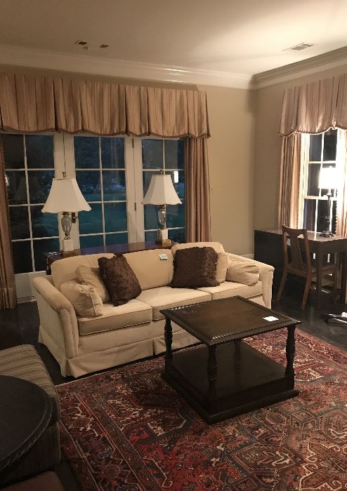 Baby grand piano Parsons dining room table China cabinet Buffet couches loveseat leather couch leather chair & ottoman Campaign chest, desk, bookcase, end table club chairs Breakfast room table & chairs coffee tables sofa tables French sofa Billy Baldwin slipper chair desks Antique bow glass display cabinet Oriental rugs and runner Marble top console mirrors center table entry table armoire lamps paintings and prints Mississippi Ducks Unlimited Sponsor Prints Artist proof Ducks Unlimited print baby bed and bassinet brass coat rack Fine linens Needlepoint rugs silver crystal brass accessories Selection of fine jewelry David Yurman and Ronaldo jewelry sterling jewelry,...