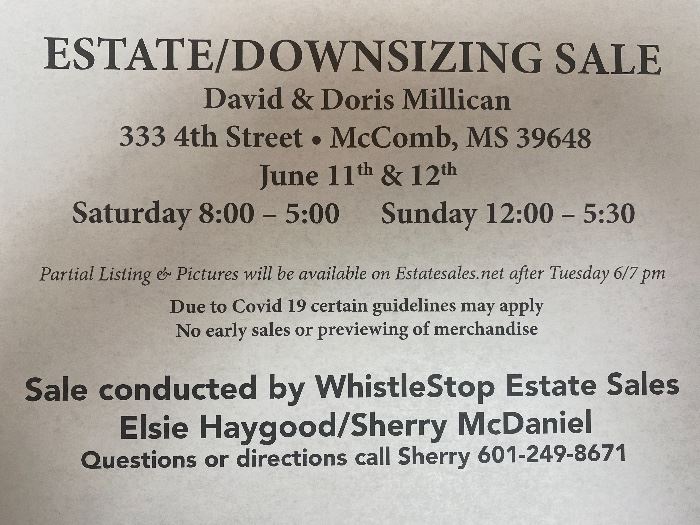 The address for this sale in Mccomb, MS 39648 will no longer be shown since it has already ended. Dates