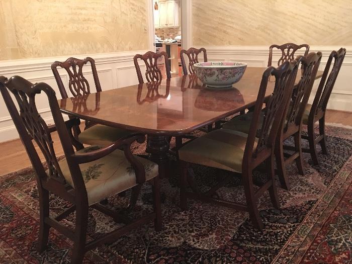 Million Dollar Home Sharon Woods Neighborhood Furniture Dusty Blue leather wingback chair and ottomon by Westchester Leather Inc., Microsuede swivel office chair, Large Mahogany Desk, Elegant double-pedestal dining table with ball and claw feet; 2 arm chairs and 8 side chairs, Beautiful custom sofa with gold upholstery and tassels, curved back and arms; coordinating throw pillows, Oriental-style square mahogany coffee table with glass top, Contemporary mahogany bedroom suite with king 4 poster bed, mirrored dresser, armoire, highboy, and 2 night stands, Bellini white bedroom suite with twin bed, sectional dresser with desk and corner shelf, night stand, shelf unit, Mahogany...