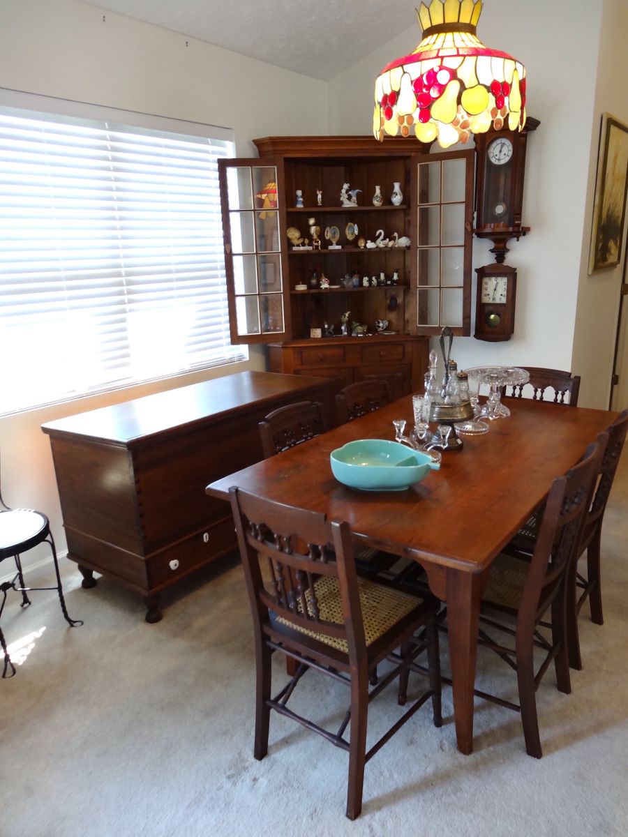 Includes: Antique pieces Blanket chests, Grain Sugar, Walnut chest with marble top, Pine chest of drawers, Desks, Console table, Brass beds, Quilts, Light fixtures, Oil lamps, Piano stool, Chairs, Gibson ice box, Clocks, Bottle collection, Phones, Cabinet cards, Art work, Blue and white china, Willow and Asian patterns, Also includes: Kitchen items, Vintage toys, Collection of Gone With the Wind dolls, Tools, China, including Fiestaware, Goal Setter basketball goal, Accordion, Hand carved wooden duck decoys, Pottery, Turned wooden bowls, Tobacciana, Washer and dryer, AND MUCH MORE!,