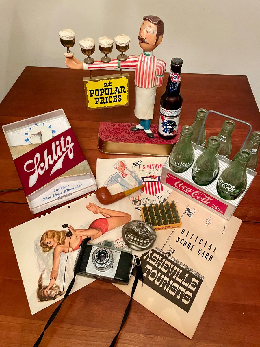 Forget the Man Cave, Bill Lashley got the whole house! Mr. Lashley spent all of his 93 years in Asheville, Mills River, and Hendersonville. After graduation from Lee-Edwards (Asheville) High School, he served in the US Army and then attended Lees-McRae and NC State. His career was in the furniture industry and he was a master woodworker and draftsman for Three Mountaineers, a unique home decor firm begun in the 1930s in Asheville whose items are prized and collected today. And the best part is that he saved everything! All the decades are represented in his collecting and organized stashes...