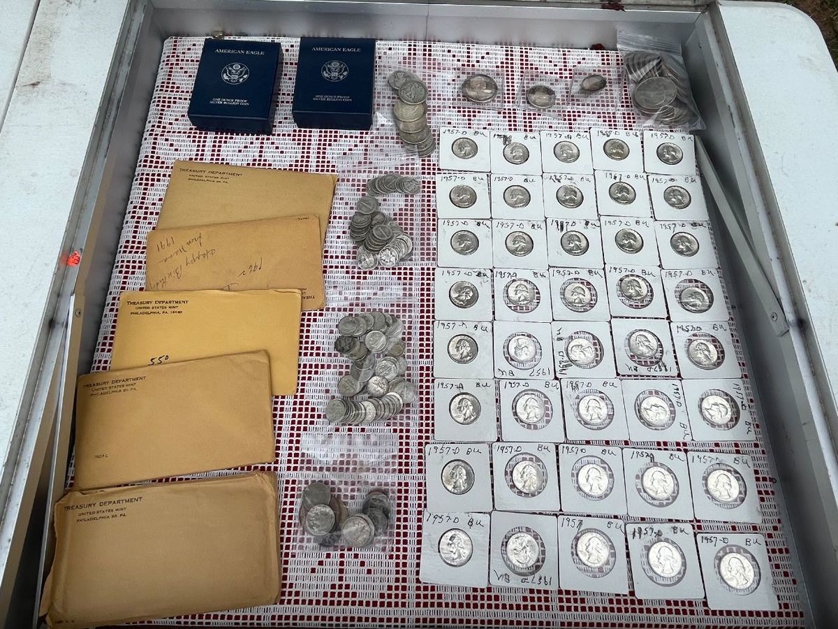 Antiques, Coins, Silver dollars, 1950's & 60's Proof sets, Stoneware pottery, Glassware, Cast-Iron pans, Sporting cards, NASCAR collectibles, Tools, Hand-made quilts, Pair old guitars, Slot machine, & more!!