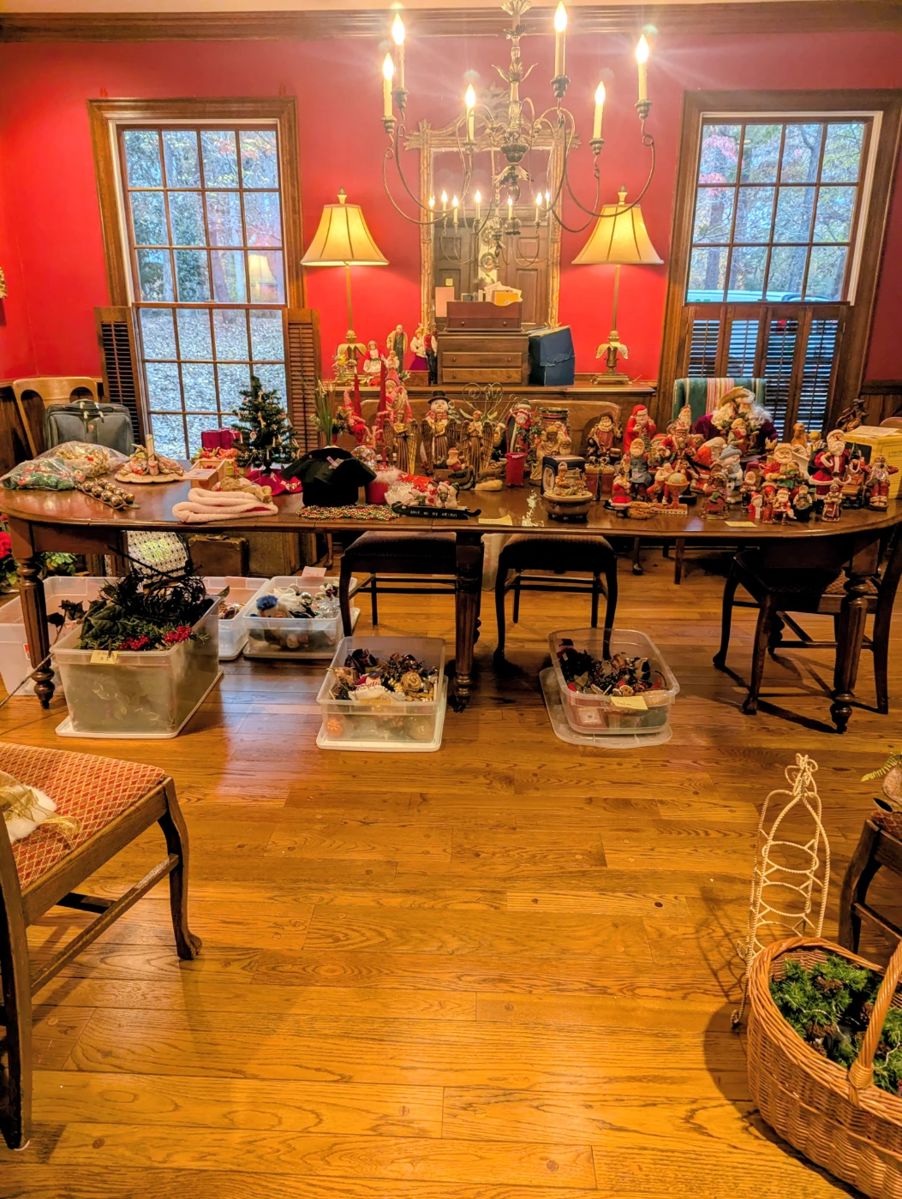 Huge single family estate sale with tons of treasures. This home is filled with something for everyone. There is an abundance of Christmas decorations, fall decorations, antique art work, mirrors, antique dressers and furniture, 4 post antique king bed, sofas, wing chairs, accent chairs, high boy dresser, side tables, coffee tables, chests, Howard Miller grandfather clock, tools, lots of jewelry, men's and women's shoes, handbags, blankets, linens, lamps, coffee pots, crock pots, dishes, glasses, silverware, kitchen utensils, pots, pans, Tupperware, glass baking dishes, cast iron, Pewter, books, flower pots, baskets, linens, cleaning supplies, DVD, VHS, and cassette players, receivers and...