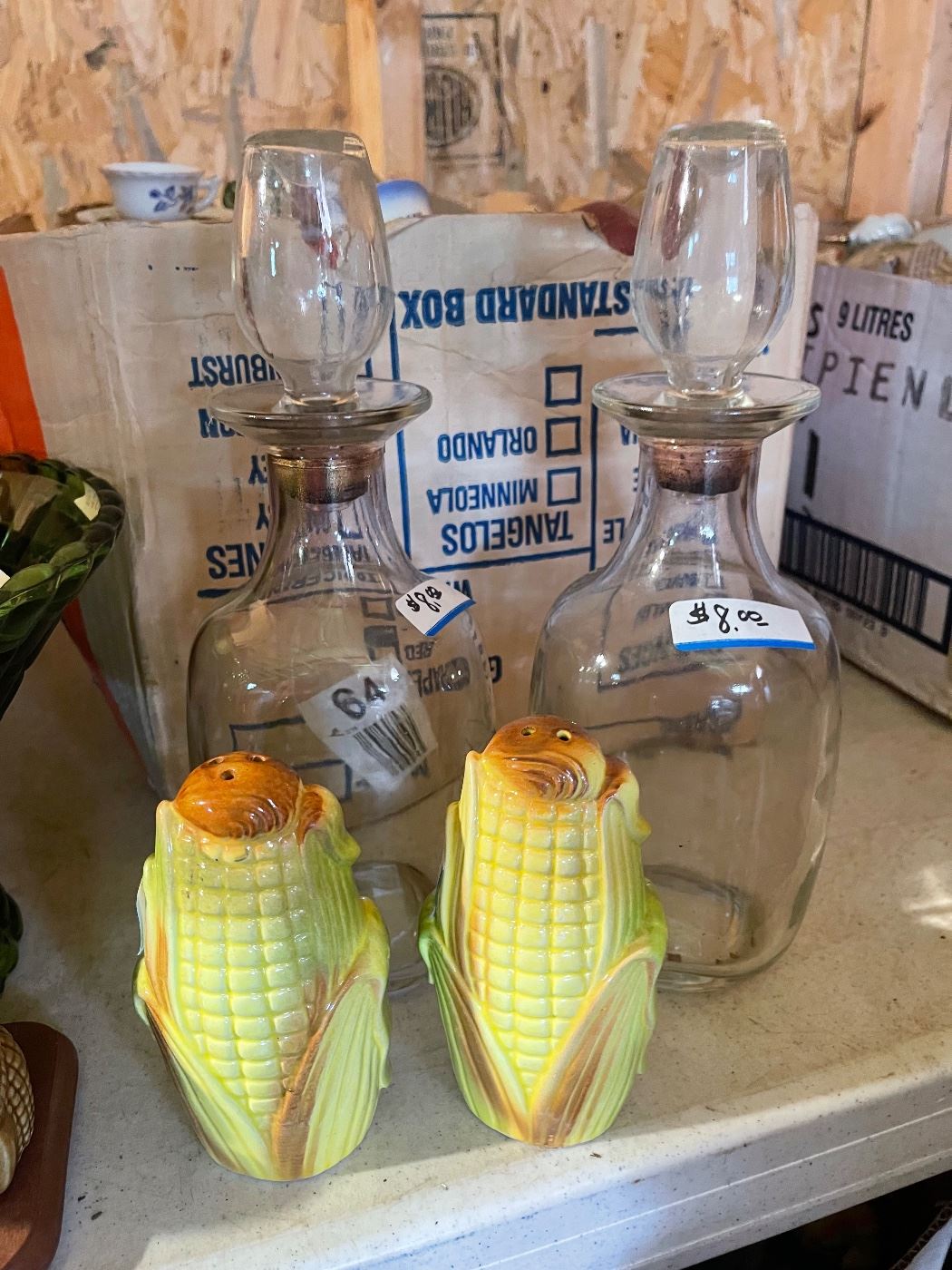 PART 2 TONS IF ITEMS IN THE GARAGE & HOUSE!! items included: Drinking Glasses, Character Glasses, Snuff Glasses, Figurines, Pots & Pans, Milk Glass, Christmas, Flush Animals, Vintage Colored Ashtrays, 4 Boxes of Salt & Pepper Shakers, Dishes, China, Vintage Toys, Pottery, Toasters, Coffee Makers, Vases, Baskets, Pyres, Corelle, Oil Lamps, Tupperware/Plastic Containers, Clocks, Tins, Coin Maps, Clothing, Blankets, Fabric, Books, Buffet Server, Bedroom Suite, Candle Holders, many Vintage Toys, Moon & Stars, Cookie Jars, Coin Banks, etc. MORE PICTURES COMING!!