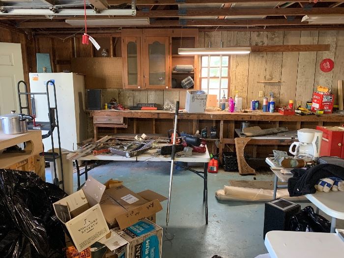 Full detached workshop, tools, oak king size bed, rugs, outdoor decor, glassware, linens, living room furniture, more than what’s pictured