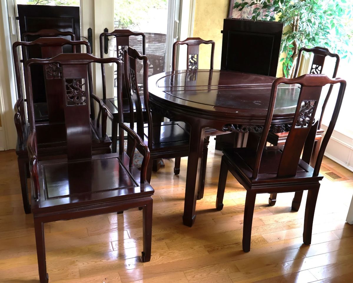 SUNDAY October 15th 1:00pm - Exclusive Forest Creek Deceased Estate - Part 2 Moved to Yanceyville for Pickup. This auction is the Second Session of items moved from Pinehurst NC for pickup. This session features, art, Waterford, Golf Items, Bedroom Furniture, and Much More. Preview, Pickup, and Additional Sessions Coming Soon. Indonesian Mahogany Table and 8 Chairs - Carved Dragons on Chair Backs and Table Apron - Table Has 2 Leaves - Measures 30" Tall 46 Across without Leaves - Leaves Measure 18" White Painted Desk with Tiffany Blue Details - 2 Drawers, 2 File Drawers, and 2 Cubbies -...