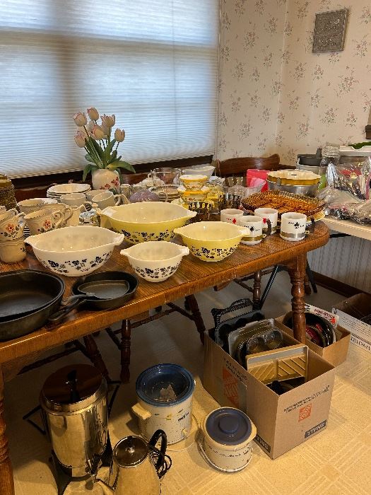Whole House Estate Sale starts Friday 3/24 at 10am 9716 Redman Ave Items for sale include: Thomasville couch & chair, Mersman end table, recliners, lift chair, lamps, mid-century modern bedroom set, MCM chairs, dresser, tables and end tables, Lane cedar chest, Queen bedroom set, twin bed, grandfather clock, oak desk, books and book cases, dining room table & chairs, china hutch, bureau, Noritake Donna china set, entertainment center, Vizio smart tv, stereo & records, artwork, costume jewelry, pocket knives, watches, vintage and current kitchenwares, Pyrex, Fireking, Corningware, Pampered Chef, full set of vintage Pyrex yellow gooseberry mixing bowls, small appliances,...