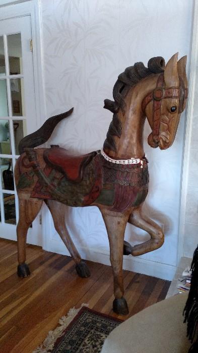 This lovely home is full of a lifetime of collected treasures and travels with unusual finds. There is a full suit of armor, 2 large wooden life size wooden horses, mud people and items from Thailand, Korea etc...Vintage, furniture, household, garage items, including power tools Converted garage area is packed with some really interesting items, many treasure that have not been uncovered yet! You won't want to miss this sale! Unusual Finds! Suit of armor, 4 ft wooden Gargoyle, Large wooden horse, 2 handmade abacus lamps, Furniture Large carved wooden liquor cabinet with folding storage, Small oriental wooden chest of...