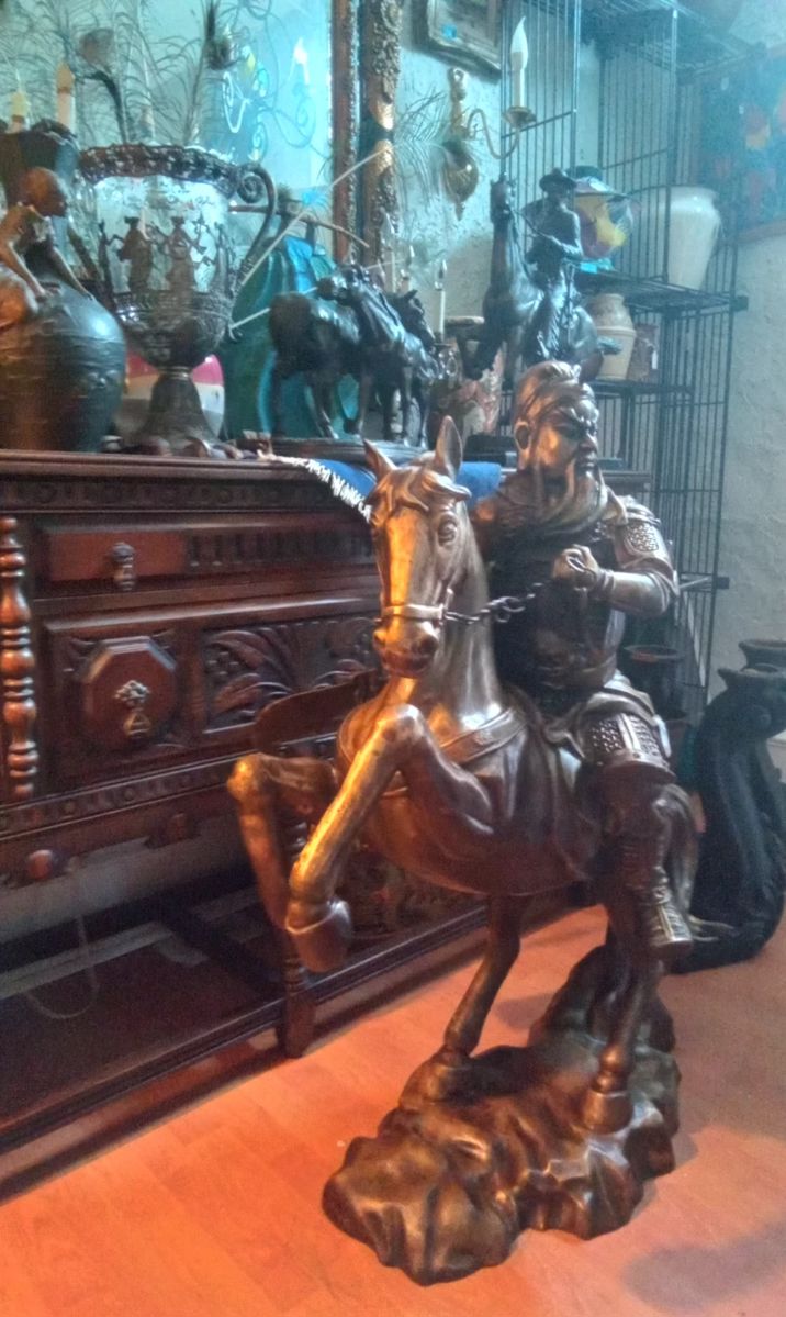 LARGE BRASS STATUE. AFRICAN ART, MIRRORS, ANTIQUE VASES, PAINTINGS,CHANDELIERS, TRUNKS. VINTAGE MADAME HATS , JEWELRY, CLOTHING,GLASS AND CRISTAL VASES,BAKEWARE ,BOOKS,  SMAll SIZE TABLES,COINS COLLECTIBLES, BEDDDING  AND MORE UNIQUE ITEMS.