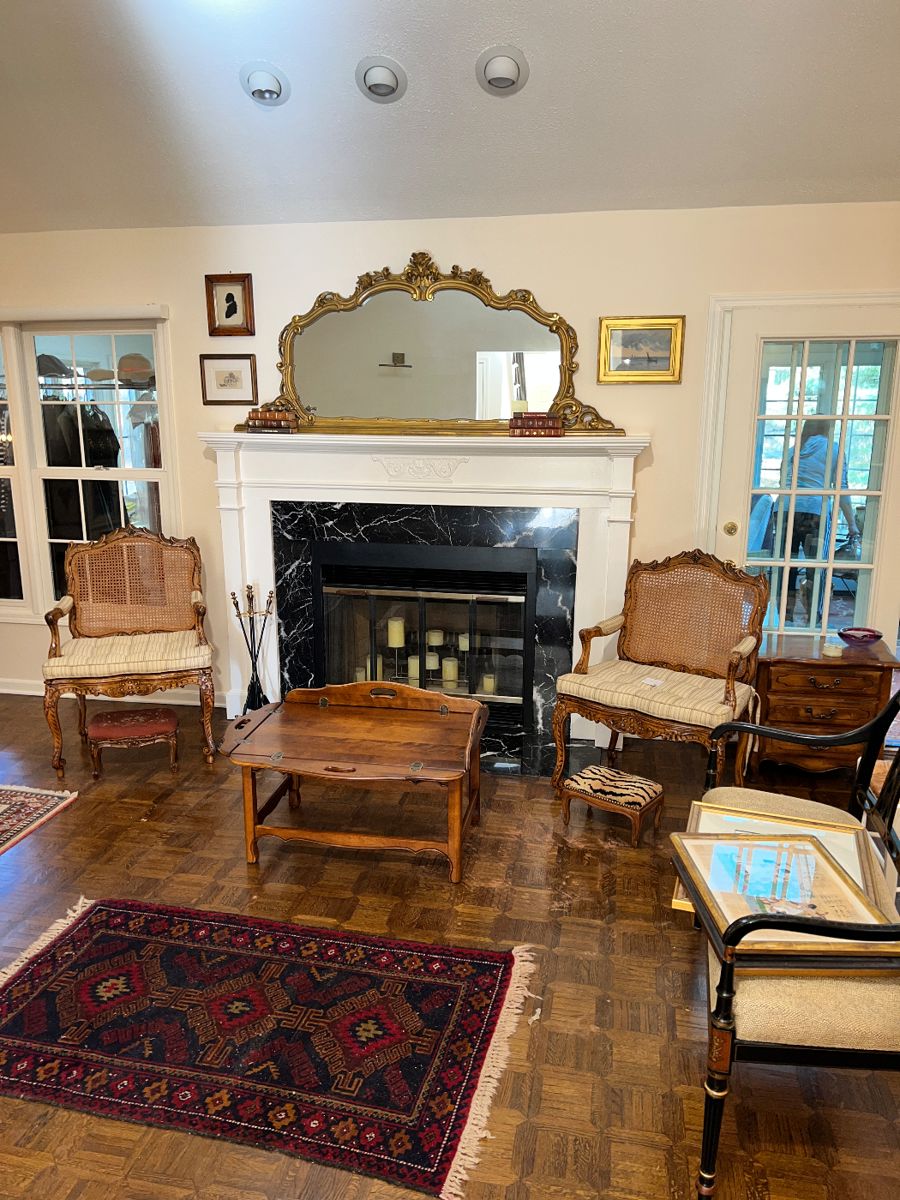 PARK ON ONE SIDE OF STREET SAME SIDE AS HOUSE or park in the clubhouse lot and take a short walk this balmy November weekend DISCOVERY presents Basking Ridge Furniture Paintings Inkwell Collection Carpets Pine country style table Large Henredon mahogany dining table Carved wood mirror chinoiserie painted mirror 19th c demure French bookcase pine X wine holders antiques sun porch furniture consoles pair of cast iron single beds Ethan Allen dresser E.A. Demilune with mirror Brass candlestick collection Kitchenware Books Bookcase leather top office desk - Nice Size pair carved French arm chairs Ethan Allen coffee table Fabulous porch...