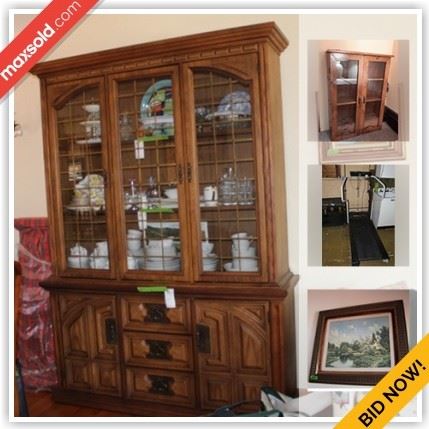 WHAT IS IN THIS AUCTION? This online auction features window AC units, furniture such as a sleeper sofa, dresser, twin bed frames, armoire, metal tables, end table server, dining table and chairs, Bassett china cabinet, display cabinet, patio furniture and more, kitchen appliances such as a refrigerator, upright freezer and small kitchen appliances, cooking, bakeware, china and other kitchen items, decor such as a cat statue, ceramic plant stand, lawn reindeer, holiday decor, mirrors, ornaments, toys, sterling silver, costume jewelry, Singer sewing machine, religious statues and much more! HOW TO ACCESS THE AUCTION? Simply click here: MaxSold TO BID PLEASE...