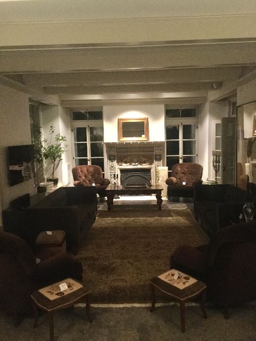 THIS STUNNING HOME FEATURES SO MANY BEAUTIFUL ITEMS INCLUDING TWO VELVET SOFAS, COFFE TABLES, FOUR SHERRILL CLUB CHAIRS, GRANITE TOPPED CHEST, BOOKCASES, SECRETARY, MAITLAND SMITH BOOK COFFEE TABLE, CONSOLE TABLES, RECLINING SOFA, MISSION STYLE ARMCHAIRS, RALPH LAUREN ROUND PEDESTAL TABLE, CREDENZA, PAIR OF BLACK CHESTS, COUNTRY KITCHEN TABLE AND CHAIRS, COUNTER STOOLS, PAIR LEATHER CLUB CHAIRS, GAME TABLE, LEOPARD PRINT CHAIRS, MEDIA CABINET, ACCENT TABLES, PAIR OF DAY BEDS, DESK, BENCHES, KING SIZE BEDROOM SET, QUEEN SIZE WHITE GIRLS BEDROOM, QUEEN SIZE MISSION STYLE BEDROOM SET, ARMOIRES, ARTWORK, MIRRORS, CHINA, KITCHENWARE, COPPER, CRYSTAL, RUGS, JEWELRY, WOMENS AND MENS CLOTHING, SHOES,...