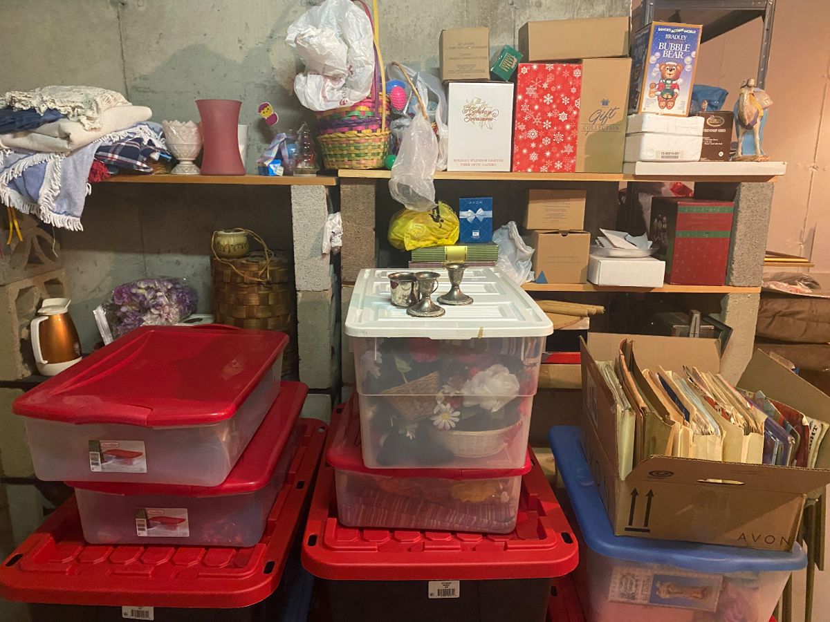 Full house and PACKED basement. Vintage toys, newer toys, baby items, boxes and boxes of children’s clothing (birth-5), women’s clothing, jewelry, vintage Pyrex, furniture, vintage and antique school desks, work bench, ladders, refrigerator, home decor, China, flatware, tea cups, vintage sporting equipment, stereo equipment, speakers, gardening equipment, tools, organ, office equipment, shelving, baby items such as strollers, toys etc, lighthouses, ducks, vintage Christmas decorations, workout equipment, luggage, Children’s records, CDs, and so much more. A sale NOT to be missed!