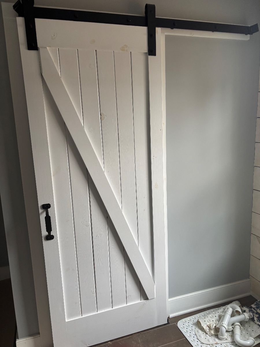 One single solid barn door with hardware