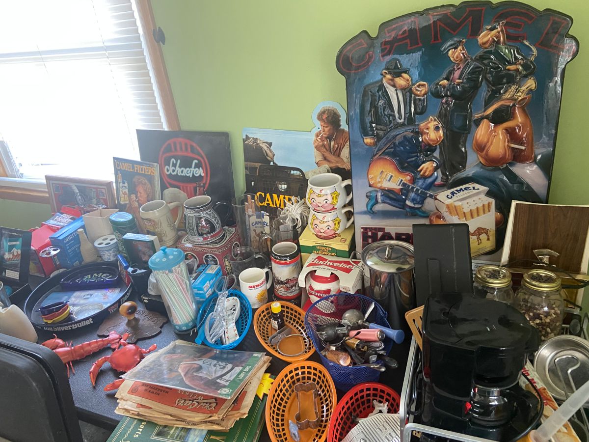 Filled with vintage items! Great finds are waiting for you. Friday & Saturday! Holiday decor including Christmas & Halloween, tools, Betty Boop, antique china, vintage clothes including t-shirts and jeans, stamp collections, Vintage cigarette advertising including CAMEL, vintage ashtrays, signs, Looney Tunes, Aye Chihuahua, Warner Brothers items, clothing, shoes, patio sets, vintage toys,arts & crafts, belts, some furniture, Beanie Babies, stuffed animals, kitchenware, antique ice picks, Coach purses, knife sets, Barbie, bar signs, Winross die cast trucks, lamps, pet supplies, home decor, artwork and more! The basement is a pickers delight!