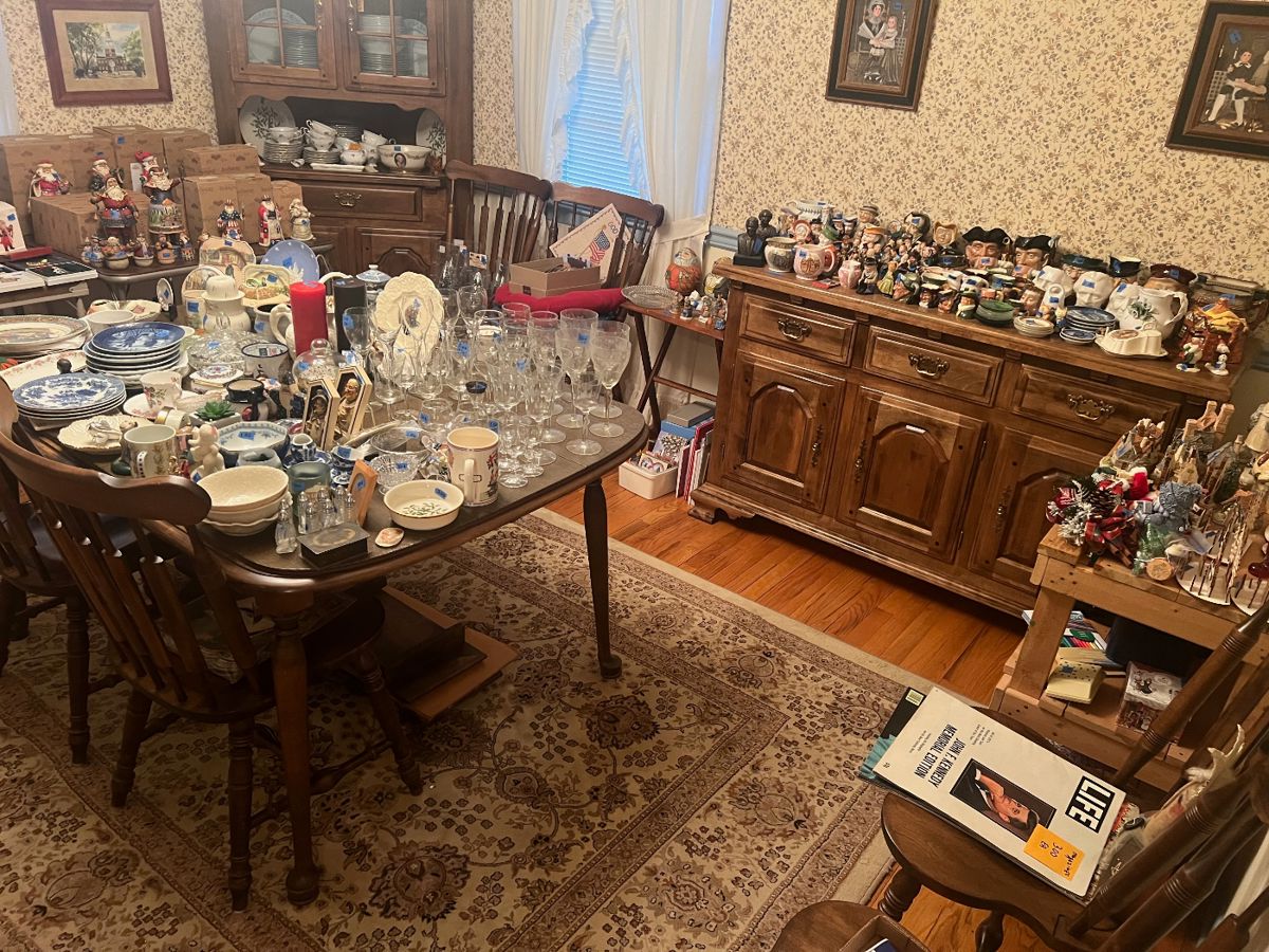 Moving after 65 years. Sold the parents home and now looking to empty it. Various old collectibles, glassware, pottery, old costume jewelry, cherry bedroom sets and various antique oak and mahogany pieces. Dad's workshop has all kinds of tools, gadgets, radio equipment, shop vacuum and toy soldiers from a company called King & Country. Mom had costume jewelry and tons of glassware, Christmas, Easter decoration by the box load, sewing machine with lots of accessories, household items, dinnerware, lots of kitchen items, small appliances, everything is very clean and ready to use. New in box stuff. Music CD's and new...