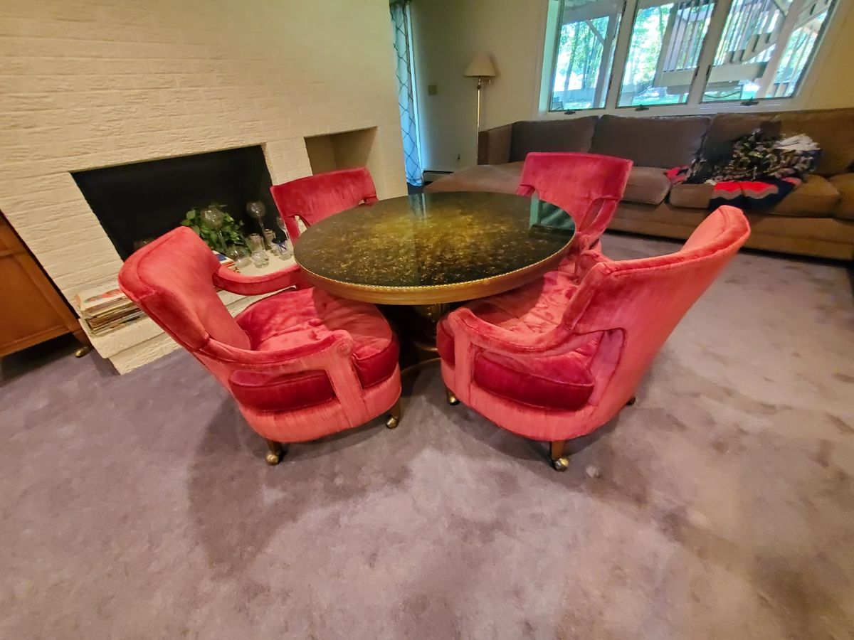 Every house offers furniture, but the furniture in this house is a little out of the ordinary: an eclectic mixture of vintage pieces including a beautiful regency dining set for four with velvet-upholstered chairs; all-leather living room seating set and coordinating stone table set; Asian influenced formal dining room set; furniture for three bedrooms; huge sectional sofa and casual coffee and end tables; two grandfather clocks and a cuckoo clock. There is quite a bit of two- and three-dimensional artwork Packed kitchen Items for entertaining Some clothing and accessories Two sets of sterling silver flatware More to come!