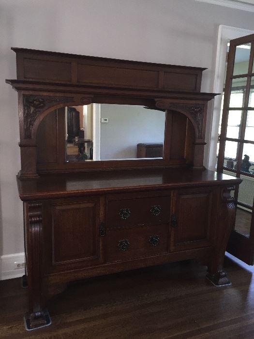 We will be In Glen Ridge in this gorgeous Victorian home filled with treasures from the past. Every available room contains remnants of a time gone by, exactly what you're looking for! Some of the highlights include: --Beautiful Art Nouveau Dining set, Ca. 1920 includes table w/ 6 chairs (only one arm chair which was typical for the era, for the head of the household), China cabinet, buffet & server --Monumental Victorian oak sideboard with beveled mirrored backsplash --Eastlake marble topped occasional table & cocktail table --Beautiful Mission oak revolving bookshelf with extending book stand --Matching pair of diminutive Art...