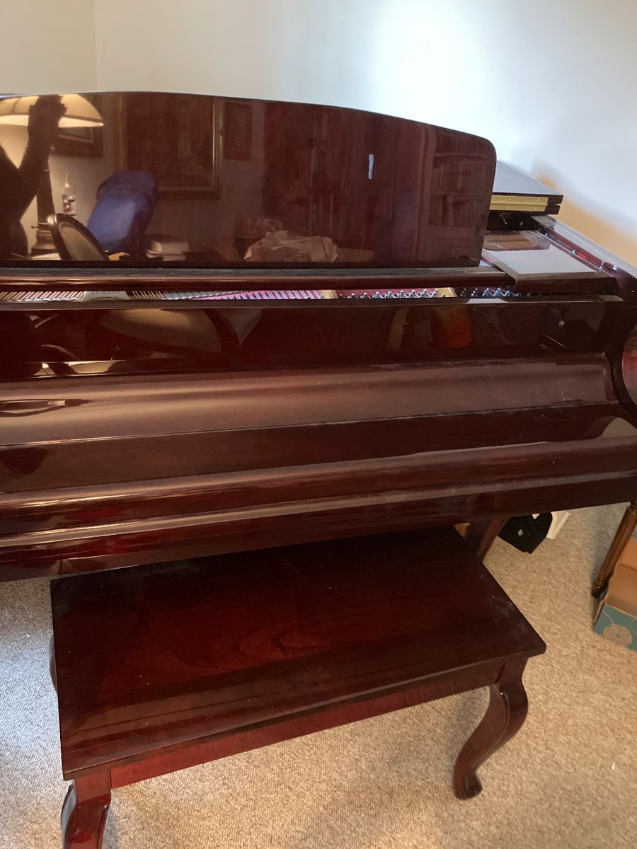 Small house stuffed like a turkey featuring a Beautiful J. Strauss and Sons Baby Grand Piano. Hitchcock chairs and dining table; Sofas; Mahogany Dining Table, Chairs and small China Closet; Thomasville bedroom furniture; Wing Chairs and Side Chairs. A large collection of books and magazines; office items; lamps; new and used dresses, gowns, skirts, slacks, sweaters, coats size small; new and used size 7 shoes; kitchen items; vhs tapes; cd’s; dvd’s; tablecloths; linens; new and used pocketbooks and evening bags and more.