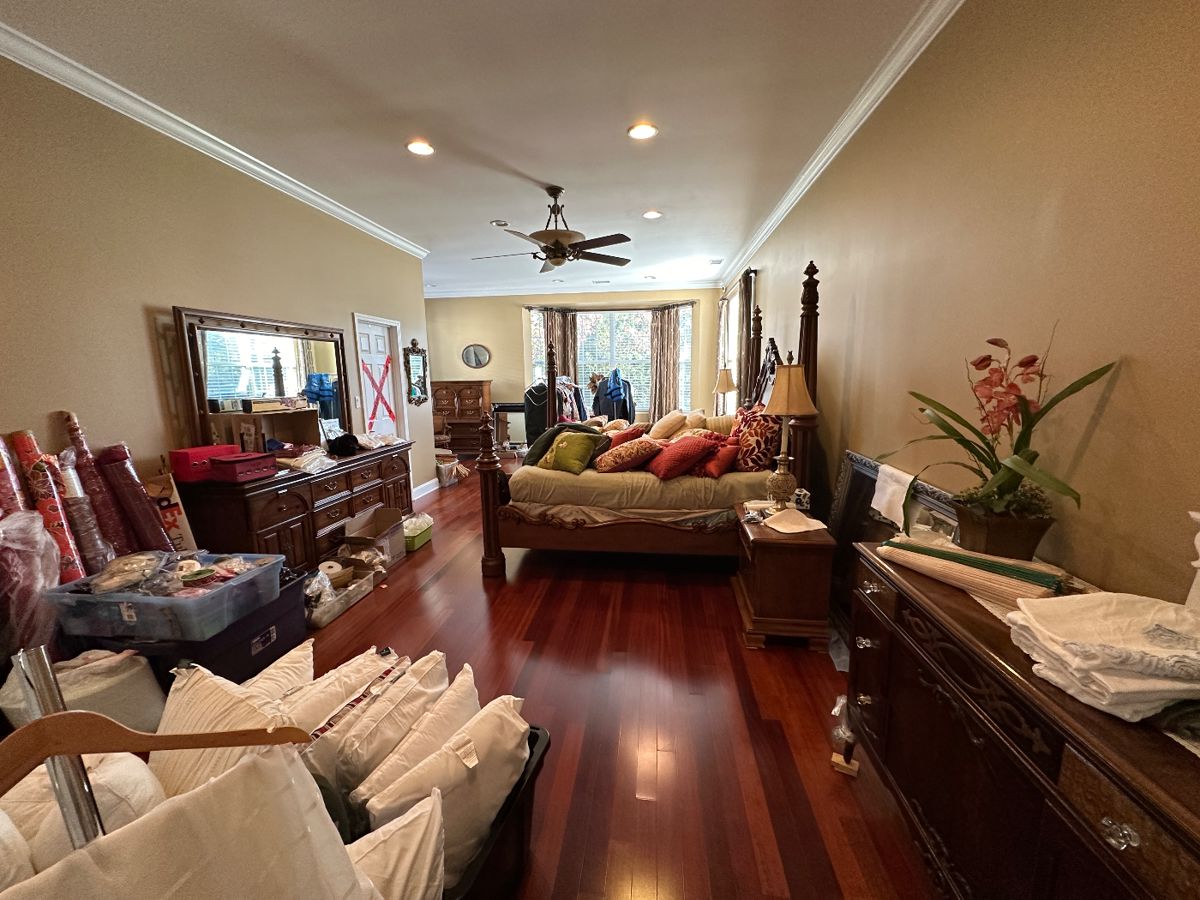 Lots of additional items being offered from antique furniture to miscellaneous house hold goods. Thomasville bedroom set consisting tall bureau, dresser with mirror, Polanski Edwardian king sized bed (mattress not included) Stanley dining room table with 10 Chairs, vintage hutch with top drawer secretary desk, antique chairs and mid century pieces. Desk by Big Rapids Furniture Co. Fabric, trim, household goods. China, room filled with Christmas and holiday decoration, lamps, lamp shades glassware, rugs, antique dolls, vintage cameras, antique irons, marble table tops (2 pink oval pieces one black round ),Sunbeam mixmaster, bakeware, small kitchen appliances, coffee urns and banquet...