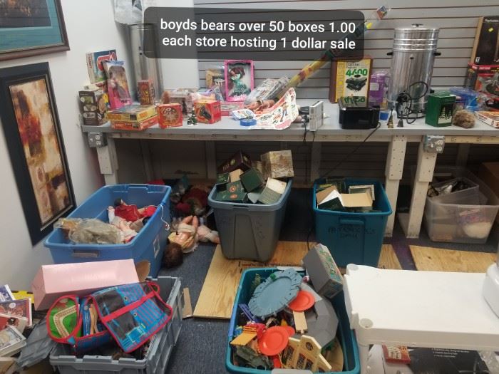 one more day and again everything is a dollar. Over a few hundered collectables,antiques, clocks,toys,camping gear, holiday lenox ornaments, purse, classic games, memobila, angels, snow babys, boyds bears new in box atleast 80 of them 2. All above is again 1 dollar a piece. China sets and much more. Tomorow will be last day..hours 9 am to 1 pm