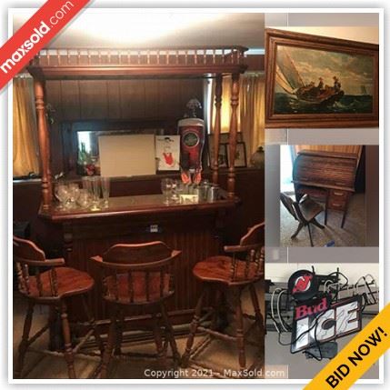 WHAT IS IN THIS AUCTION? This online auction features stamp collection, Lionel train, Lladro, Limoges, Lenox, fine china, sterling silver, furniture such as rocking chair, Hitchcock table with chairs, vintage school desk, and bedroom set, power tools, glassware, lamps, record albums, telescopes, framed wall art, grandfather clock, CDs, DVDs, globe bar, bakeware, costume jewelry, 56” Sceptre TV and much more! HOW TO ACCESS THE AUCTION? Simply click here: MaxSold TO BID PLEASE REGISTER: Copy and paste this link to your browser https://maxsold.maxsold.com/register WHEN DOES THE AUCTION CLOSE? Everything will SELL BY Wednesday September 29, 2021 8:15 PM regardless of price....
