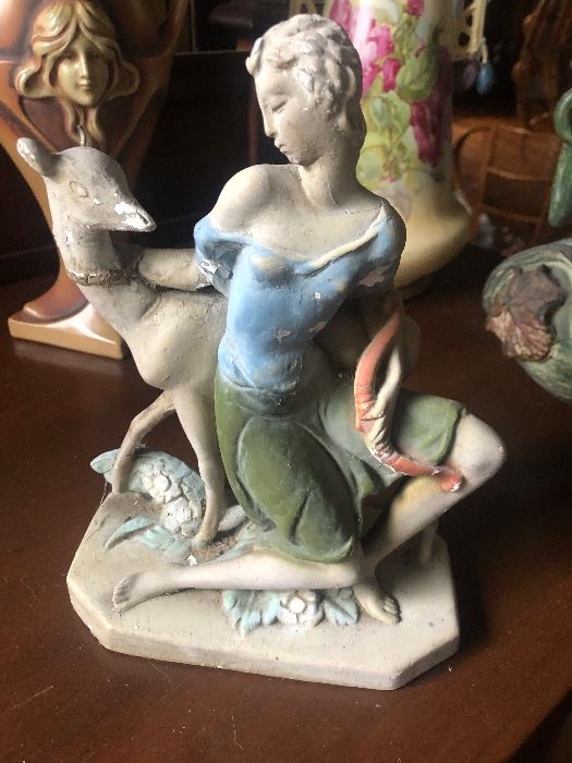 Long time collector of art objects, is letting go of many fabulously beautiful, one of a kind pieces. Periods range from primitive, victorian, art deco, art nouveau to mid century modern. Item include: Artwork, pottery, African art, furniture; Art Deco, bamboo seven piece porch set, Art Nouveau wrought iron/glass, three tiered shelf, Mid Century styled Schnadig living room couch, coffee table and side chair, mirrored vanity, Ethan Allen “country colors”, two piece buffet, French canopy chair, Victorian claw foot server, Victorian drop down desk with tapered splat back Windsor chair, Duncan Phyfe end tables and fold out mail table, gorgeous...
