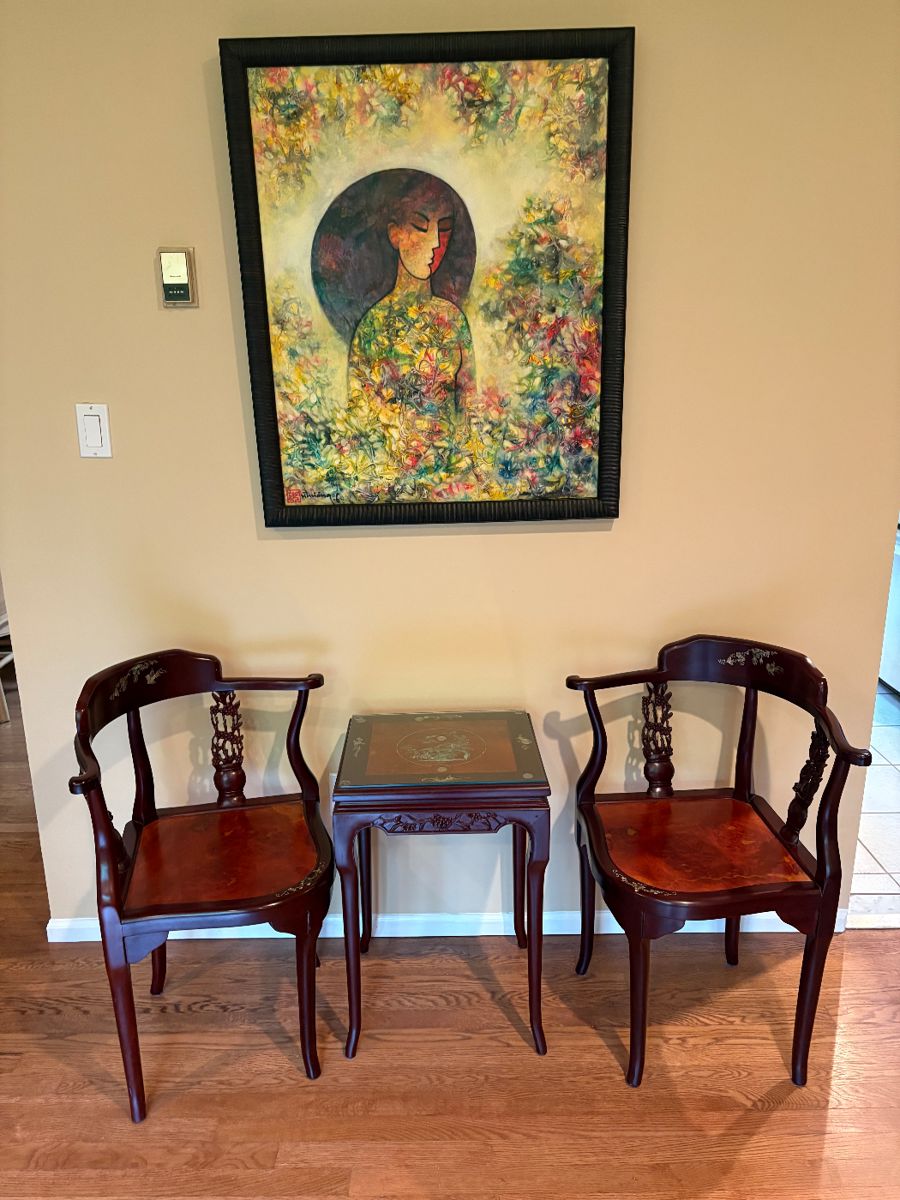 Please check back for more photos as we continue to set up. Dining room table & chairs with leaves & pads by Century Furniture, Kitchen table & chairs, Accent tables & chairs, Asian decor, Stemware including Waterford, Kitchen items LOTS OF KITCHEN ITEMS!, Catering supplies, Small kitchen appliances, Baker’s rack, Home decor, Jewelry, Women’s clothing, shoes & hand bags, Books with lots of cook books, Bookcases, Desk & office supplies, Bedroom furniture, Artwork, Stereo equipment, Stereo component rack, Collectible plates, Patio table & chairs, Weight bench, Stepper, Beanie Babies, Toys, Grill, Plants, Planters & Terra cotta pots, Gardening equipment, tools...