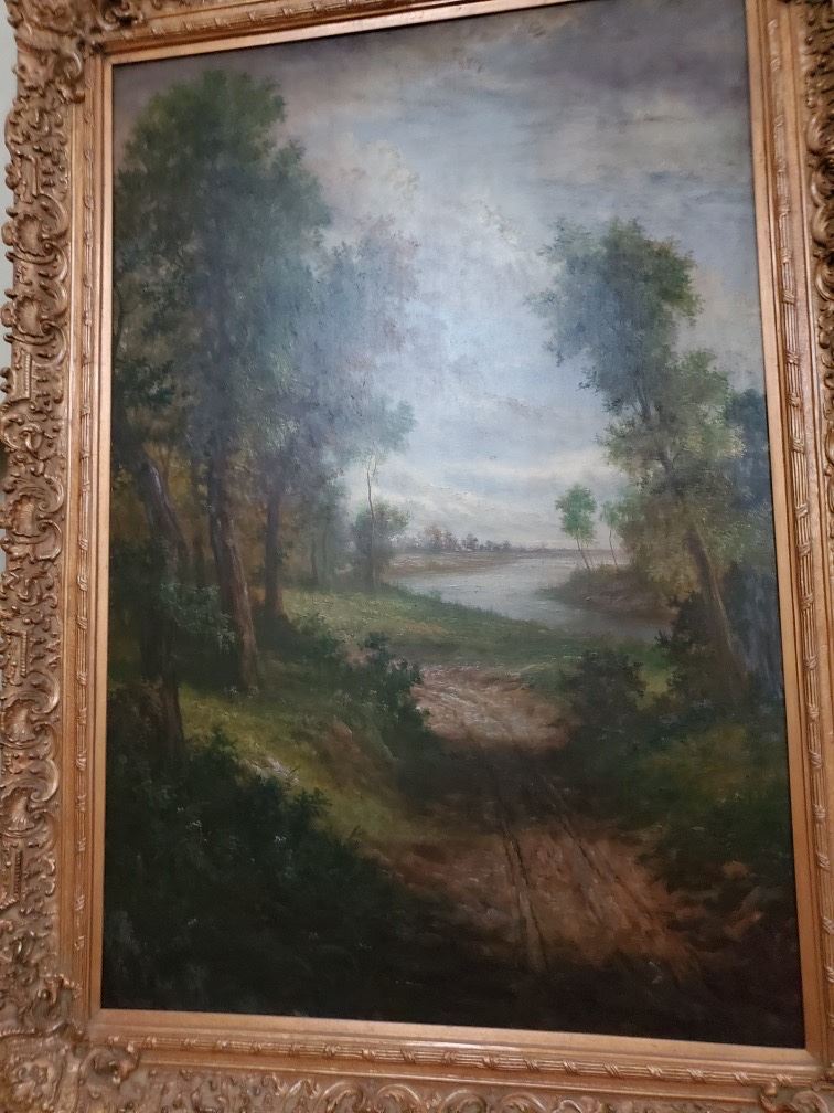 .Very large oil painting with beautiful gilded frame. Aprox. 5x7 ft .Oil paintings and watercolors .Posters .Large size bronze with two horses by P J Mene .Oriental rugs .Large, heavily carved sideboard .Set of 6 uphostered dining room chairs .Set of 8 new leather-like chairs .Leather sofa, arm chair and ottoman .marble top coffee table .Set of bar stools with green velvet fabric .Gold Crocus by Minton for Tiffany and Co. Fine bone china set service for 8. .Gold framed mirror .Vintage occasional furniture: dresser, chairs, table .Treadmill .Foosball .Golf clubs .Lanterns and other light fixtures .Office furniture .Children's furniture...
