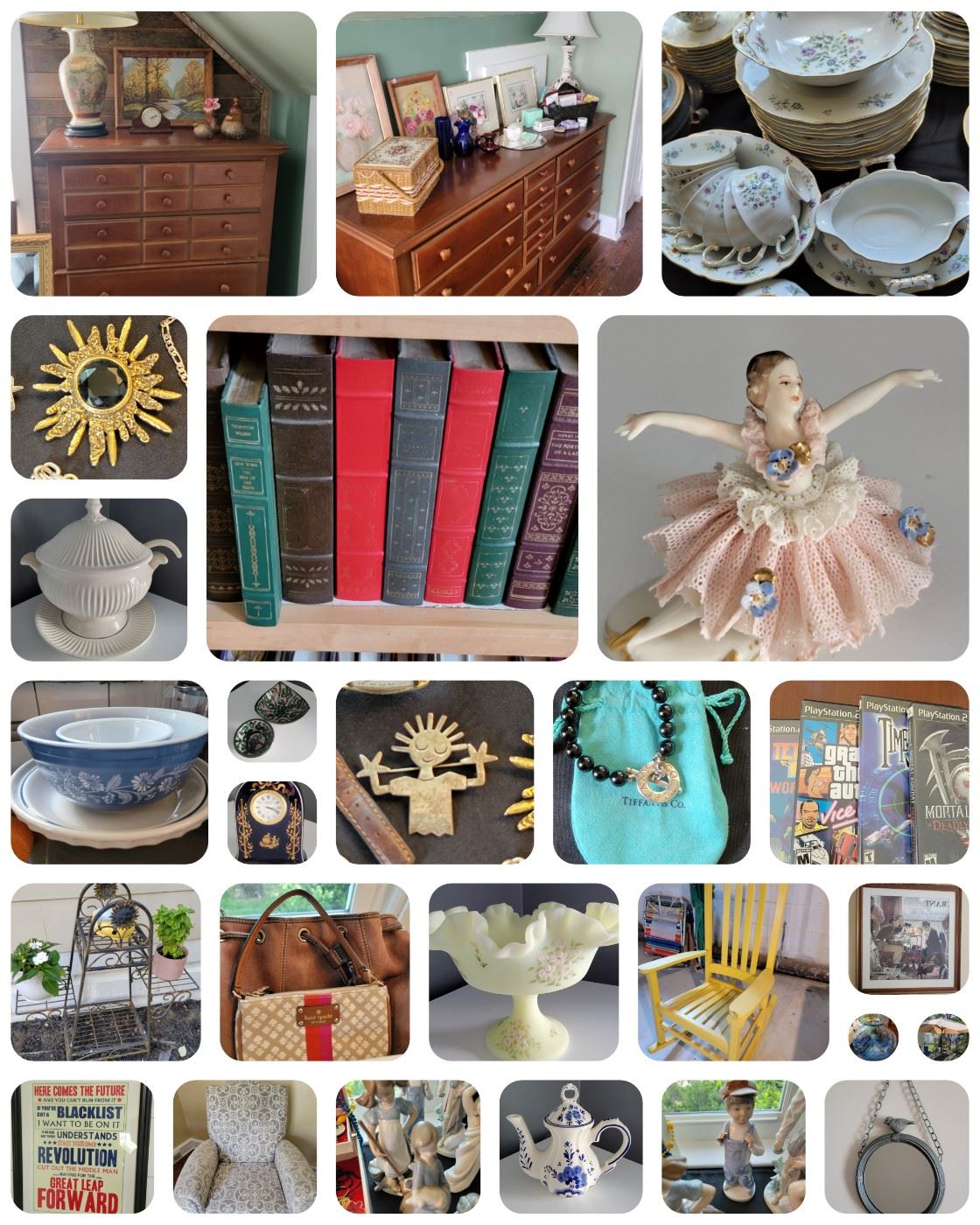 Come to Oaklyn this weekend. This home has a little something for everyone. Please remember that any furniture being offered is available for pre-sale. Dressers & mirrors Recliner Queen size bed (mattresses not included) Lamps Artwork Lladro Jewelry Lots of books Lenox Glassware Bavaria Germany Beautiful porcelain items Men's and women's clothing Men's and women's shoes Lots of tools Outdoor umbrella Small outdoor tables Planters (wood trellis' are NOT FOR SALE) Kitchenware Office supplies Office chair File cabinets Christmas Decor Plus much more......