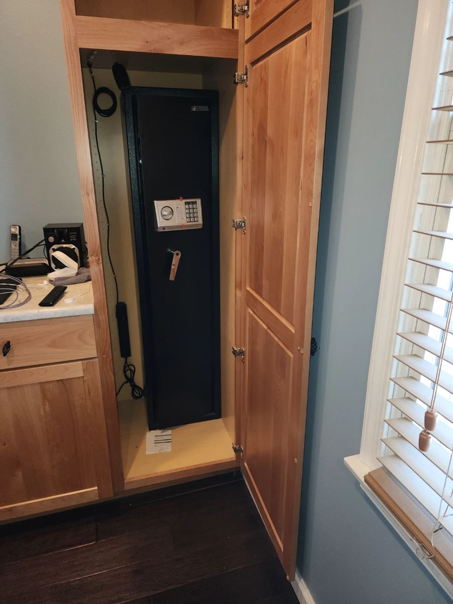 Bedroom sets, gun case, large floor safe, corner desk with chair, crib, upholstered recliner, dining table with chairs, China cabinet, artwork, upholstered sofas and chairs, bakeware, dish ware, glass ware, home décor, desk with bookcases, assorted toys, oak kitchen cabinets, vintage Simplex sewing machine with cabinet, typewriter, skis, wet suit, large flatscreen TV, exercise equipment, weights, office equipment, vintage Olympic turntable, Little Tikes office desk with chairs, baseball bats and equipment, vintage Olympic stereo phone and much more.