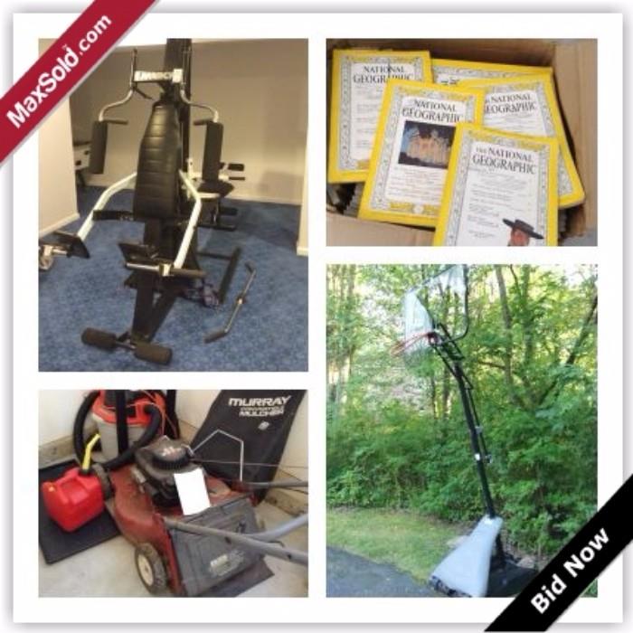 WILL SELL by Tuesday September 01, 2015 12:00 PM Princeton (New Jersey) Moving Online Auction - Maybury Hill Rd This auction features Marcy Monster Fastrac Fitness Machine, Alpine Tracker CSA Fitness Machine, Wall Units, Matching Tables, Electronics, Games, Ping Pong Table And Accessories, Storage Chest, Foot Stools, Hats, Door And Door Frame, Cameras, Small Guitar, Sheet Music, Records, Lighting, BridgeStone Auto Tire, Formica Countertop, Old National Geographics, Tools, Tecumseh MarkIV Lawnmower, Shop Vac, Wheel Barrow, Royce Union Girls Bike, American Girl Doll And Accessories, Basketball Hoop and much more! NO PREVIEW for this auction. Bidding by catalog ONLY. View catalog...