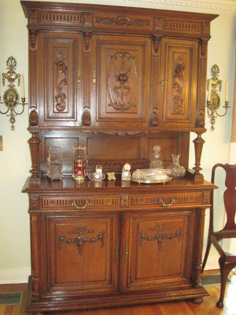 Lovely, Quality, Clean Home with over 60 Years Accumulation of Furniture, Decorative Items, Household and Personal Items. Beautiful, Quality Antiques throughout, purchasing only the best over the years and maintained with great care. All in excellent condition in the Living Room, Dining Room, Bedrooms and Family Rooms. Magnificent French Carved Hutch; Beautiful Antique Welch Sideboard with inlay, 6' long by 2' wide; Inlaid Tables; Marble Topped Tables; Round Oak Kitchen Table with Leaves and Four Chairs; 18th Century Gate-Leg Mahogany Table 32" x 10 1/2 " (opens to 31" ); Two19th Century Complementary chairs; Many Table and Floor Lamps -...