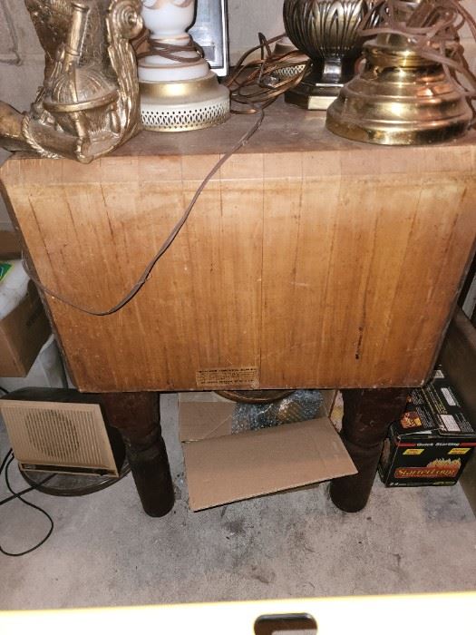 Antique display case, furniture, meat scales, meat grinder, unused and used butcher block, old tools and cash registers, Lenox, housewares.