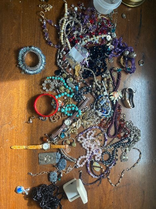 Jewelry, clothing, designer brands, pocketbooks, jackets, furniture, outdoor furniture, garage filled with tools, lawnmower, etc, planters, chiminea, household goods, kitchen supplies, kitchen aid mixer, tons of blue and white decor, collectibles, antique and vintage furniture and chairs, pottery, China, serving dishes, holiday decorations, mirrors, lamps and so much more!! Too much to list!
