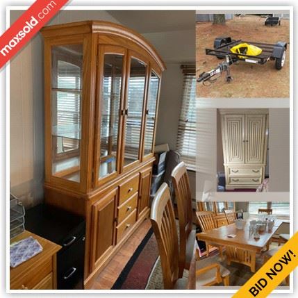 WHAT IS IN THIS AUCTION? This online auction features furniture such as a dining room table, desk, china cabinet, couch, side tables, American Drew furniture, Adirondack chairs and more, clock, decor, extension ladder, trailer hitch, fishing tools, car jack, tools, home health aids, afghan books, electronics, seasonal decor, kitchenware and much more! HOW TO ACCESS THE AUCTION? Simply click here: MaxSold TO BID PLEASE REGISTER: Copy and paste this link to your browser https://maxsold.maxsold.com/register WHEN DOES THE AUCTION CLOSE? Everything will SELL BY Sunday January 23, 2022 8:00 PM regardless of price. Bidding starts at $1. This is an online...