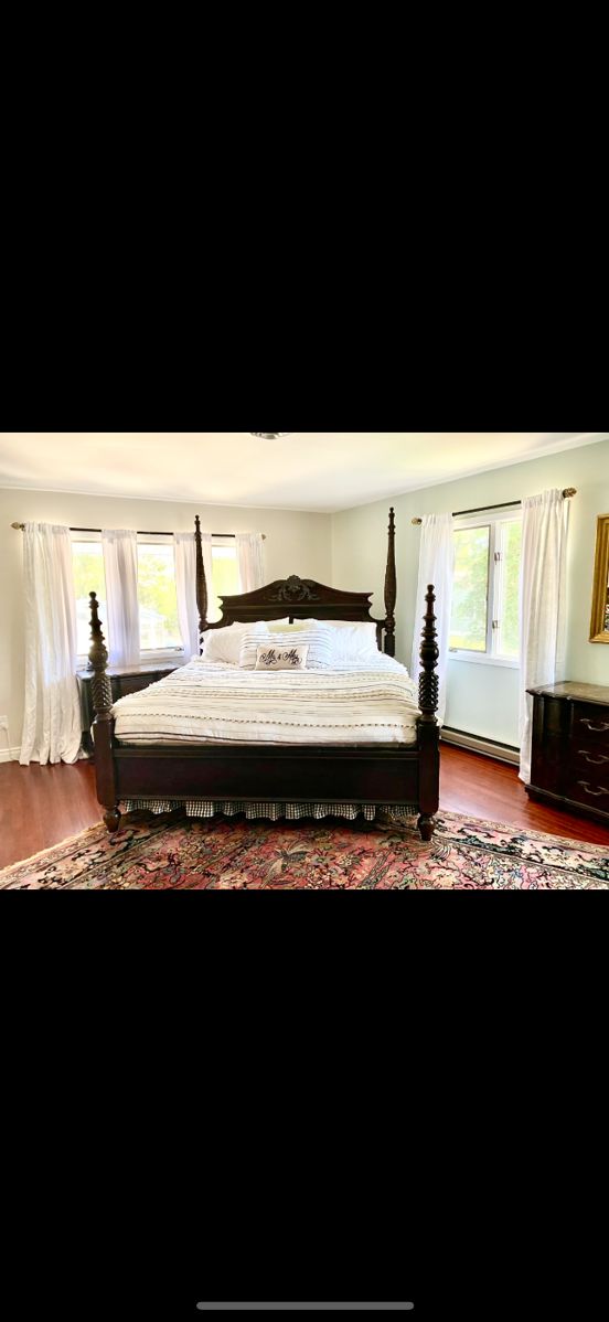 Cash only (no venmo/zelle/paypal/etc) Estate furniture sale. All furniture was wrapped and moved by professionals. Currently in storage on Rt 37 in Toms River and must sell. Please txt 732-864-5973 for serious inquiries only to coordinate purchase. See pics but Includes: Bernhardt bedroom furniture set ($2,500 obo) king size bed poster frame/set, 2 marble top nightstands, armoire, tall dresser, & long dresser w/ detachable mirror. Retailed well over 20k for entire set and great condition. vintage solid wood, custom painted buffet/dresser set-large and small pieces (250 obo) small 38.5” x 18.25” x 30” high; Large: approx 65” wide x 23.5”...