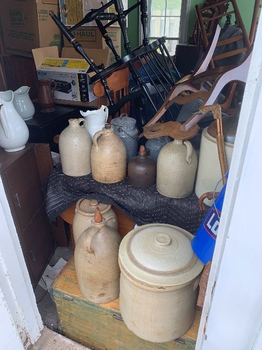 This is an everything must go sale full of a 100 year accumulation. There is Americana, stoneware, pottery, asian items and asian artwork, old oil paintings, frames, liquor decanters, brewery items, mission furniture, musical instruments, furniture, old books and games, old toys, lighting, Bradley & Hubbard, oil lamps, glassware, old sound equipment, vintage speakers and turntables, something for everyone. It was difficult to take photos as the garage is full and I would have to unpack to photograph. This is ONE you DON'T want to miss!!!! This sale will be held outside on the back patio and front lawn. You...