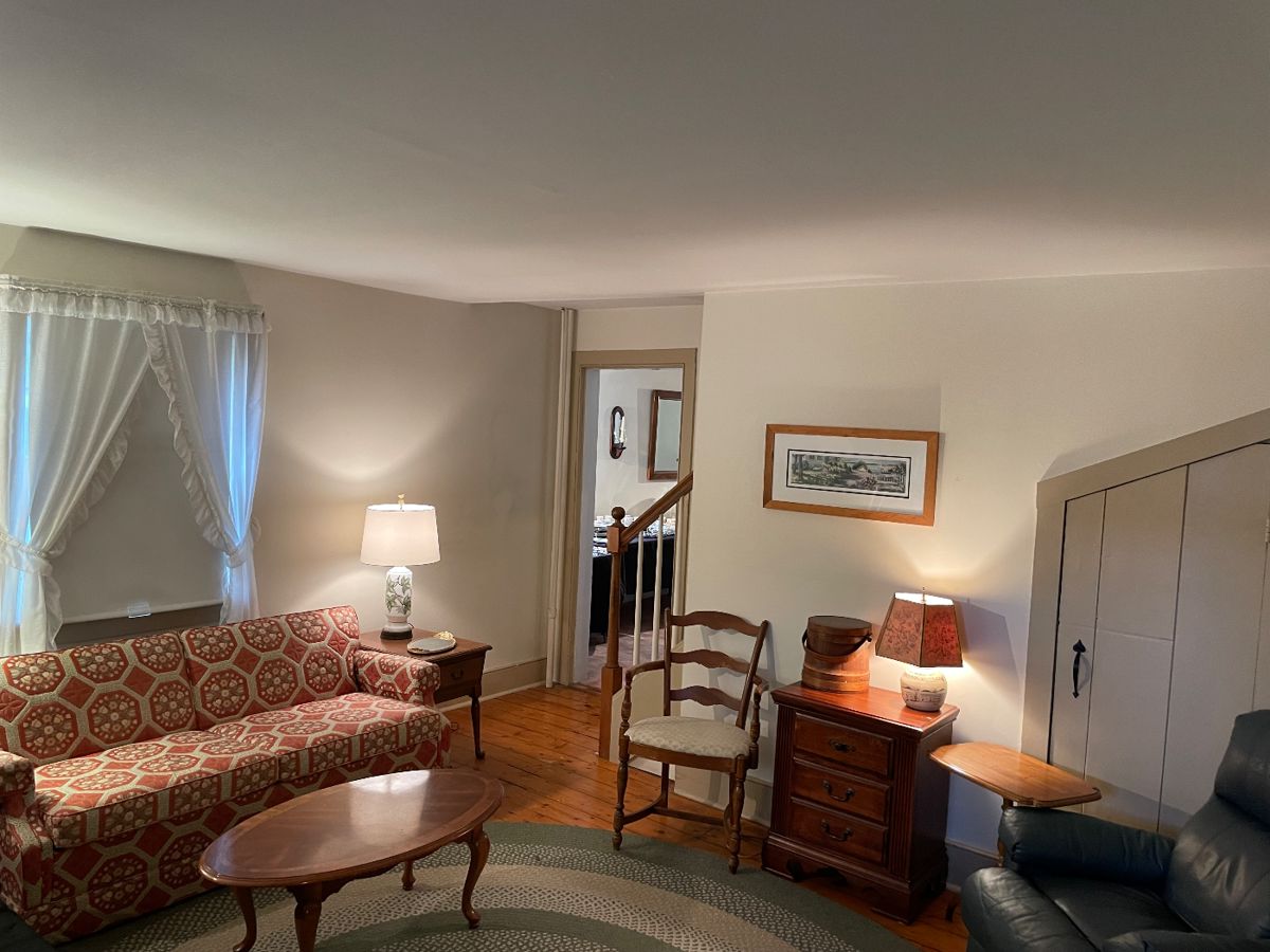 House is packed with American antiques consisting of four Tennessee Windsor chairs, oval mahogany coffee table, primitive trunk, leather recliner chair, primitive dough box, walnut step cupboard, maple kitchen table, set of sixty Hitchcock chairs, many dressers, wash stands, beds, occasional tables, desks, military trunks, Victorian sofa, Stangle, Lenox, Limoges, Nippon, porcelain, pottery, collection of pitchers, American glass, bottles, sterling, silverplate, mirrors, books, records, electronics, copper, brass, baskets, door stops, canning jars, Dodge antique scale, linens, art, Christmas, many primitive items, tons of bric-a-brac, household items. Too Much To List!