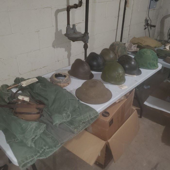 SIGN UP SHEET GOES OUT NO EARLIER THAN 8 A.M. SATURDAY. NO OTHER LISTS WILL BE HONORED. NO MORE THAN 10 PEOPLE INSIDE HOUSE AT A TIME. NO MASK, NO ENTRY. NO CUSTOMER BAGS ALLOWED. This is the militaria sale that started last weekend, and we're going back for ONE MORE DAY because there's still so much great stuff to sell! Spanning World War I through the modern day, the collection includes American, German, and British apparel, helmets and hats, boots, tools and equipment, many medals and much more! Prices will be reduced! No reasonable offer will be refused! Also:...