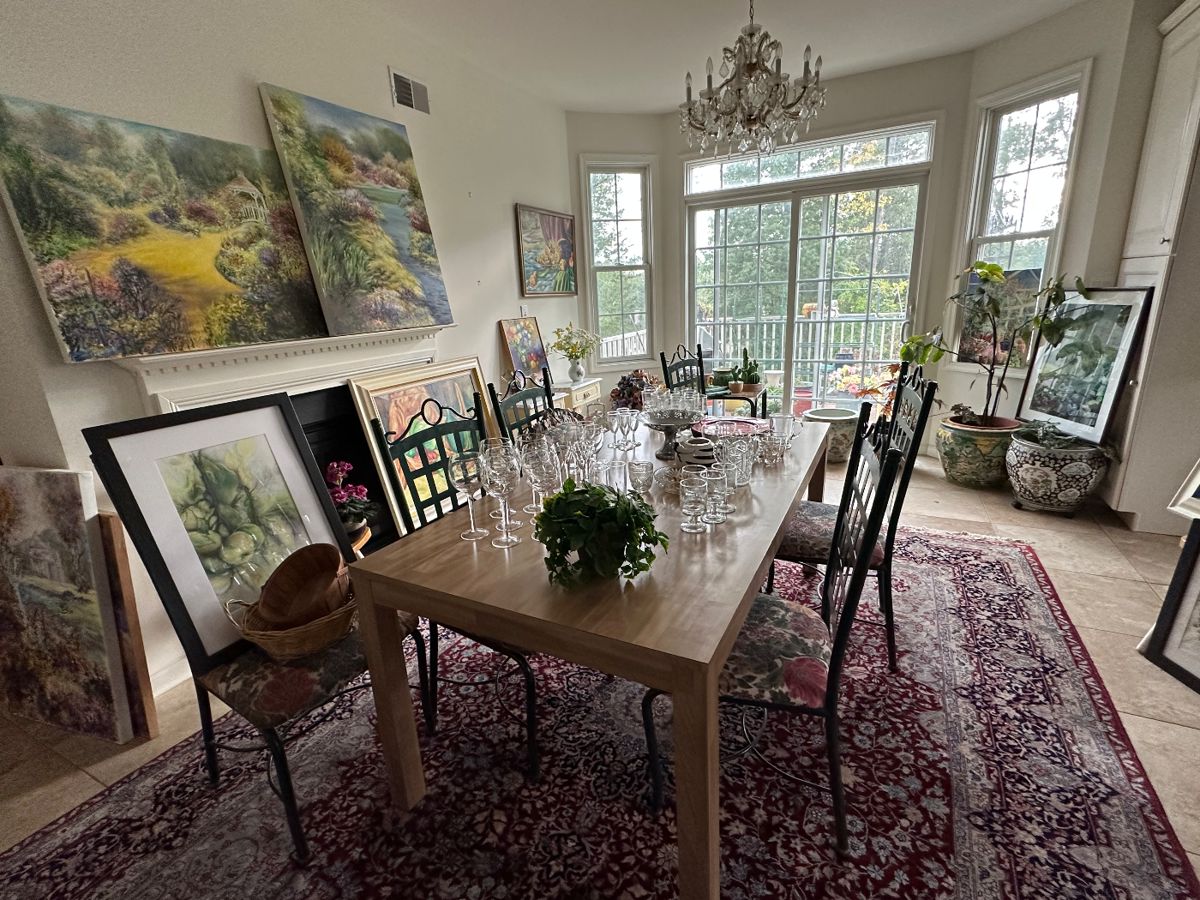 PERSIAN RUGS, ASIAN ITEMS, VINTAGE ITEMS, ART SUPPLIES, PAINTINGS, ART EASLE, KITCHEN ITEMS, DINING ROOM SET, KITCHEN TABLE & CHAIRS, BEDROOM FURNITURE, HURRICANE LAMPS, VINTAGE PLANTERS, VINTAGE CAPODIMONTE, CONSOLE TABLES, VINTAGE MENS CLOTHING, AND MUCH MORE!
